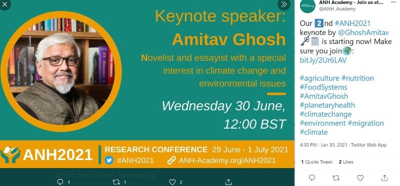 Amitav Ghosh is a public speaker, and he is often seen attending research conferences related to the topics on environmental and climate change issues in India and globally.