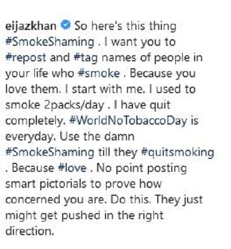 • Does Eijaz Khan smoke?: No (He used to smoke earlier, but he quit it later)